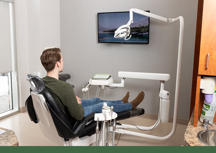 Our clinic is bright, open, and designed with your comfort in mind. You can relax under TVs mounted on the ceiling while we work. More importantly, we take time to explain everything using photos, scans, and easy-to-understand language, so you can make confident decisions about your oral health.